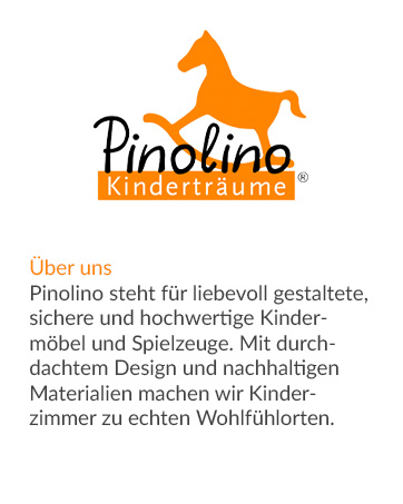 L'achat de meubles pour enfants est bien plus qu'une simple décoration. Il s'agit de sécurité, d'atmosphère de bien-être, de calme et de designs affectueux. Les besoins particuliers et en constante évolution des petits habitants devraient toujours être mis au centre de l'attention. Pinolino vous propose un large choix de meubles pour enfants de haute qualité et personnalisés, qui vous permettent de créer l'espace de vie adapté à votre enfant et à vous. Les meubles sont non seulement conçus avec beaucoup de cœur, mais aussi particulièrement durables, sûrs et polyvalents. En tant qu'entreprise familiale, Pinolino développe ses produits de la première idée lumineuse à la production certifiée. Les valeurs de la famille, du bonheur, de la sécurité et de l'individualité sont là un énoncé de mission et de motivation dans le travail quotidien. Avec la gamme diversifiée, Pinolino souhaite créer un environnement affectueux pour se sentir bien.