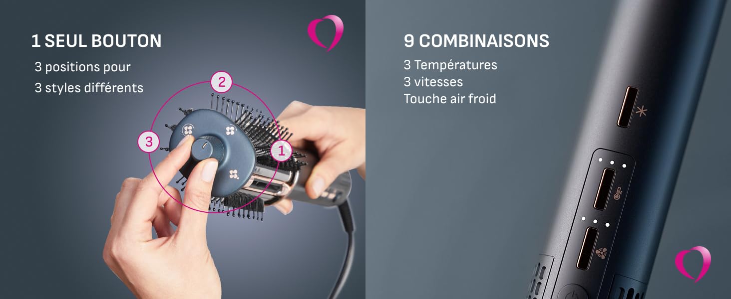 - Type : Brosse soufflante 3-en-1