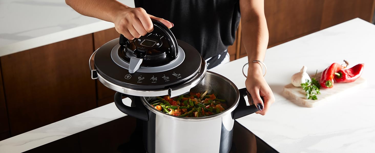 Découvrez Clipso+ CHEF, la cocotte-minute dotée de 4programmes de cuisson dédiés pour cuire chaque groupe d'aliments à la perfection: légumes, féculents, viande et poisson. Préparez toutes vos recettes préférées en un clin d'œil grâce au couvercle facile à ouvrir et au minuteur automatique intelligent. Robuste, sûre, compacte et durable, la cocotte-minute Clipso+ CHEF ne vous laissera jamais tomber!