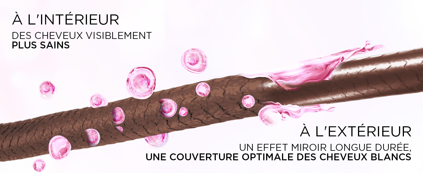 Cheveux 3x plus brillants et 4x plus soyeux (test instrumental).