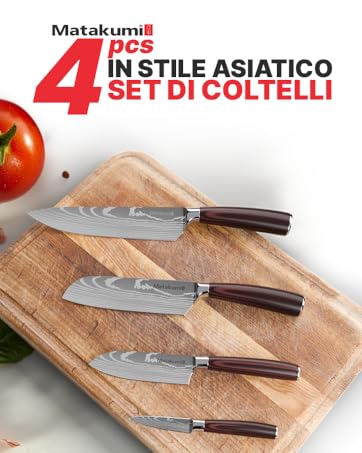 Matakumi - Set couteaux japonais damassé - 5 pièces - acier carbone, manche ergonomique