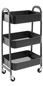 DOEWORKS - Chariot de rangement 3 niveaux métal, roulettes, noir