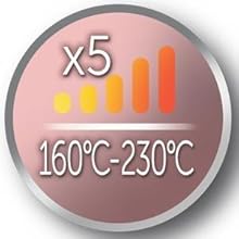 5 niveaux de température (160-230°C), chauffe ultra rapide (15s).