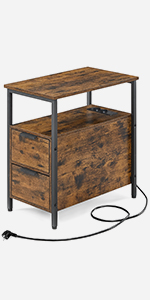 VASAGLE - Table d’appoint série LET - 2 tiroirs, multiprise, rangement compact - LET327W14