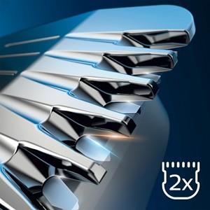 Coupez tous types de cheveux, grâce à notre technologie avancée DualCut: un élément de coupe innovant à deux tranchants coupe les cheveux deux fois plus rapidement que des lames à un tranchant.