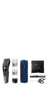 Le kit coiffure comprend une cape pour l'hygiène, des ciseaux, un peigne et un coffret de rangement rigide permettant de ranger votre tondeuse et ses accessoires.