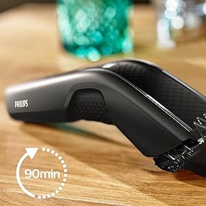 Cette tondeuse s'utilise avec ou sans fil. La puissante batterie de la tondeuse à cheveux offre jusqu'à 90 min d'autonomie pour 1 h de charge. Pour un maximum de puissance et de liberté.