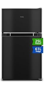 Espace de stockage : 187 L réfrigérateur et 75 L congélateur.