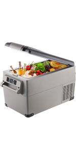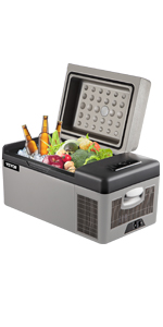 Son réfrigérateur portable pour voiture de petite taille a un aspect concis avec un simple assortiment de couleurs noir et gris . Facile à actionner l'écran avec le panneau de contrôle numérique, design compact, constant et haute efficacité et ses deux câbles d'alimentation, le rendent idéal pour un usage intérieur et extérieur. Avant de l'utiliser, veuillez laisser debout jusqu'à 6 heures pour l'utilisation s 'le frigo-long terme.