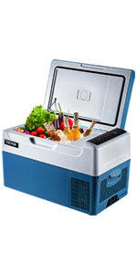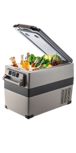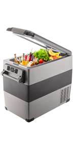 Dimensions : 57 x 37 x 54 cm / 22,4 x 14,5 x 21,2 pouces Capacité : 50 L Poids net : 13,4 kg Tension : 12 / 24 V (CC), 220 V (CA) Puissance totale en entrée : 45 W Consommation d'énergie : 0,2 kw.h / 24 h Intervalle de refroidissement : de -20 à 10 degrés C.Technologies : Compresseur