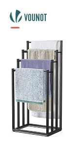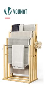 VOUNOT - Porte-serviettes 4 niveaux bambou - autoportant, crochets, bain