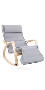 SONGMICS - fauteuil à bascule, bois et tissu, 125x67x91cm, 5 positions, LYY41G