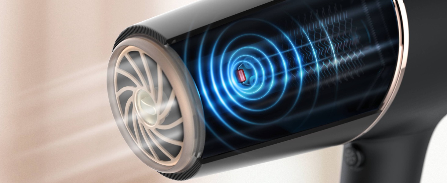 Séchage 20 % plus rapide avec un flux puissant de 2 300 W.