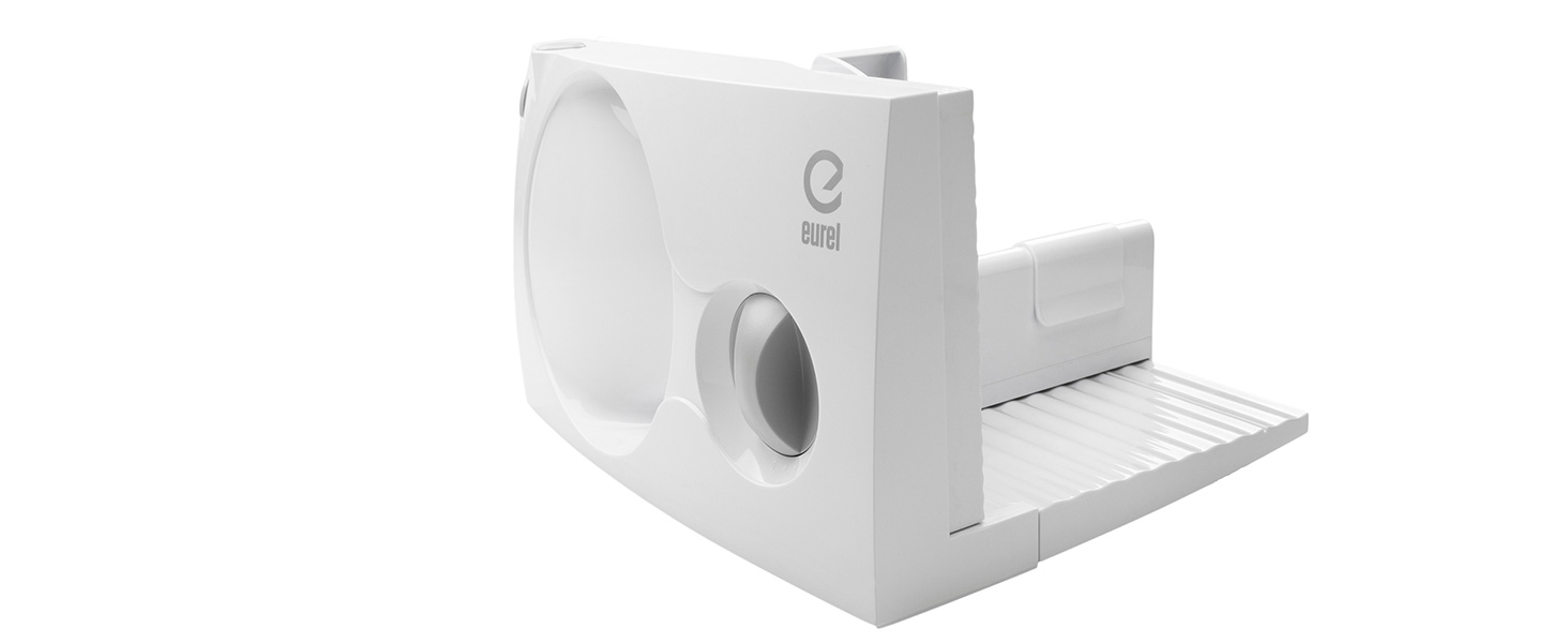 La trancheuse EUREL RS42 est fabriquée en Europe, répond à des normes de qualité élevées et est composée de plastique sans BPA. Ceci garantit sécurité et durabilité.