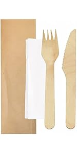 Ensemble fourchette et couteau emballés ensemble pour plus de commodité. Nous proposons également ce set avec une serviette à l’intérieur, assurant ainsi une expérience complète pour l’utilisateur.